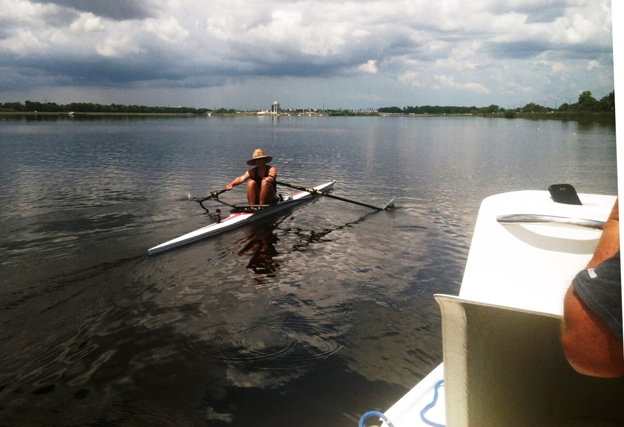 Edwards used to row with the competitive team Sarasota Crew. He attends Columbia University, but is back in his hometown to give the course a test run with his single person boat. He shows me how it's done.