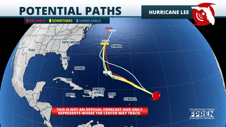 The National Hurricane Center says Lee is expected to remain a powerful hurricane through early next week. Lee is a Category 4 hurricane as of 11 a.m., but fluctuations in intensity are likely over the next few days.