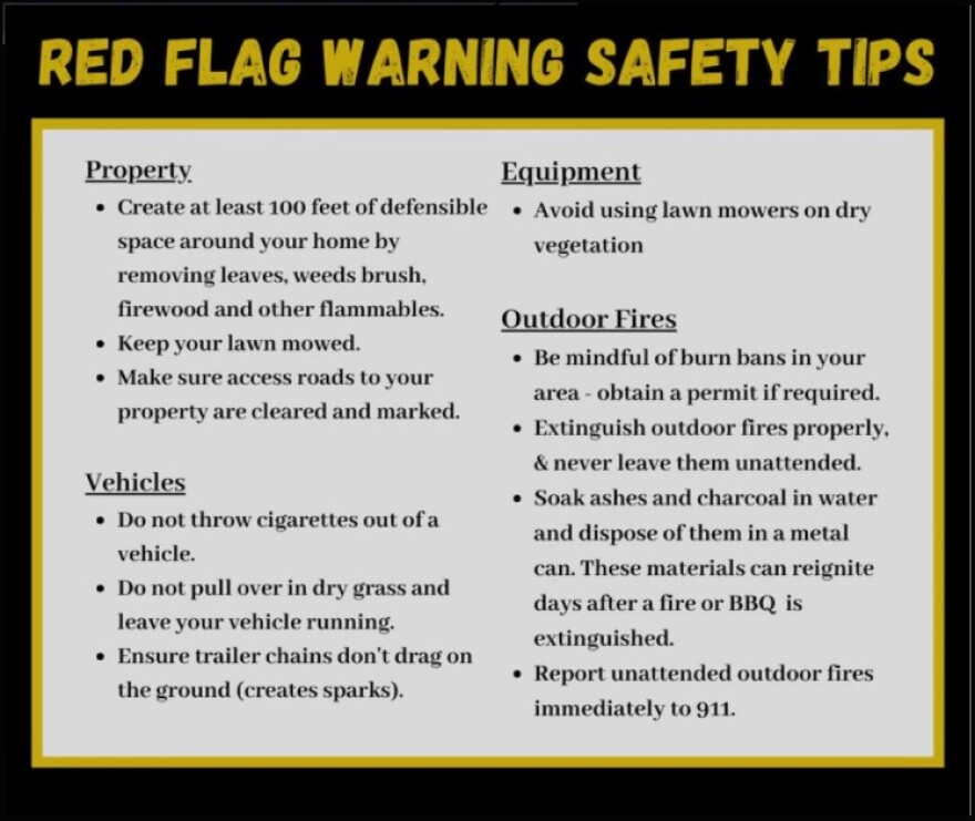 A Red Flag Warning means that critical fire weather conditions are either occurring, or will shortly. That combination of strong winds, low relative humidity, and dry fuels can contribute to extreme fire behavior.