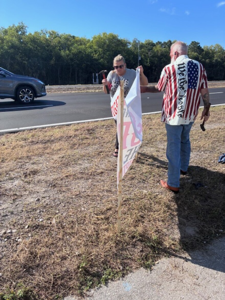 Cootware arrived wearing flip-flops and with a hammer. Not as a statement, but to pound wooden sticks into the ground to support a large banner featuring Sheriff Marceno’s photo with the word “criminal” splashed across it.