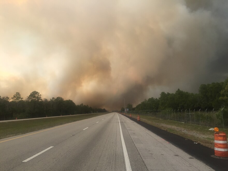 Officials now said the fire was human-caused but not necessarily arson. Strong wind gusts earlier that week fanned the flames westward toward Collier Boulevard, making the fire especially difficult to contain.