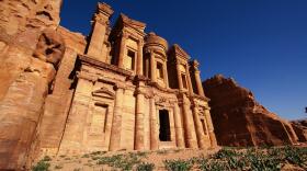 How did early engineers carve tombs into rock cliffs and funnel water to this desert city?